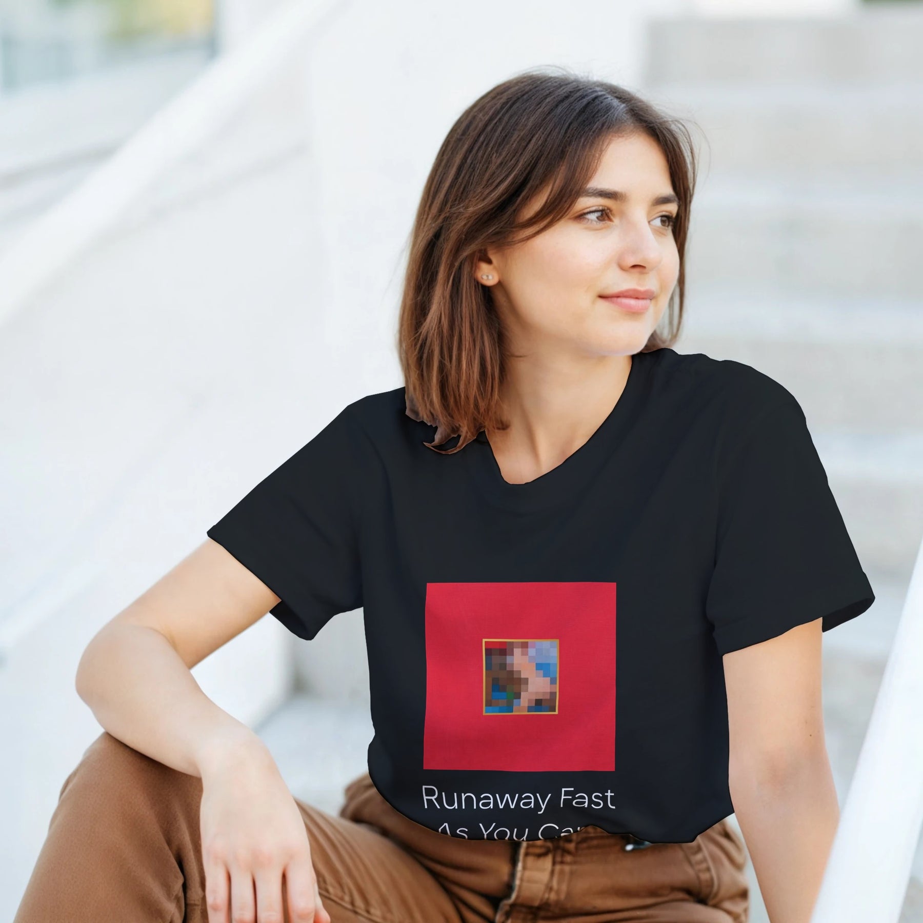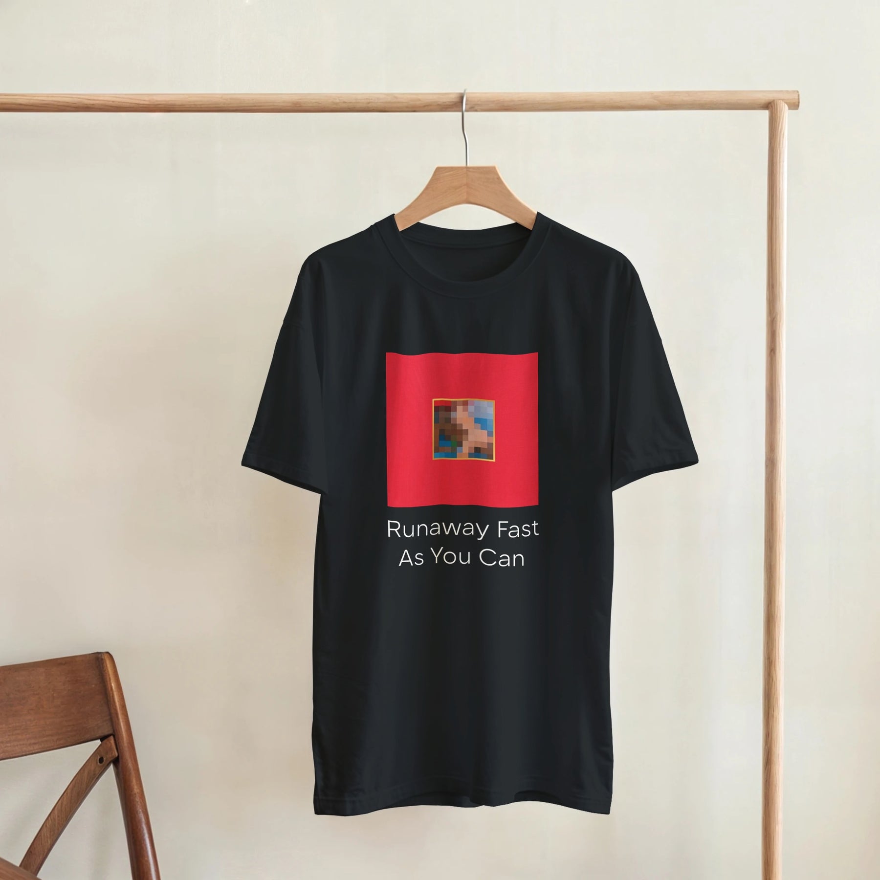 Celebrate the artistry of Kanye West with our exclusive MBDTF T-Shirt featuring the iconic album cover and the unforgettable line, "Runaway fast as you can." This t-shirt is not just a piece of apparel; it’s a statement of style and musical appreciation.